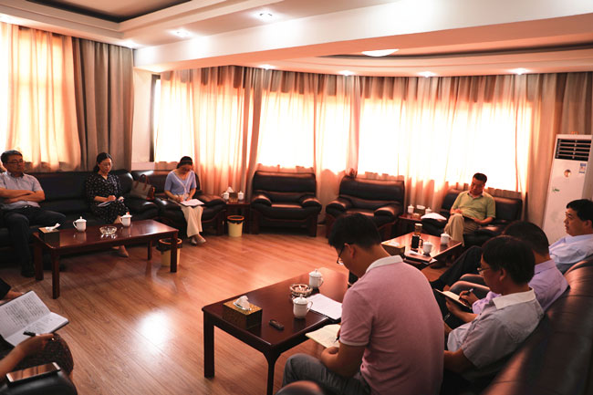 8月8日上午,開(kāi)發(fā)區(qū)社會(huì)事業(yè)局局長(zhǎng)蘇月虹、猴嘴街道黨工委副書(shū)記、辦事處主任趙士安一行4人到我公司專(zhuān)題調(diào)研青口鹽場(chǎng)社會(huì)職能移交事務(wù)。公司董事長(zhǎng)、黨委書(shū)記胡傳法,總經(jīng)理史祥平陪同調(diào)研。