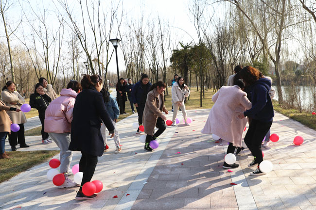 為使大家身心得到最大放松,投入戶外體驗(yàn)清新大自然,在絲路小鎮(zhèn)公園進(jìn)行了“三月女人天 別樣婦女節(jié)”主題戶外活動。游戲“你畫我猜”中,隊員們有的配合默契一猜既中,也有的用肢體艱難的比劃著,引的大家捧腹大笑。“踩氣球”游戲更是讓現(xiàn)場氣氛達(dá)到沸點(diǎn),每人都放開平日工作中的嚴(yán)謹(jǐn),放松心情在場地上追逐奔跑。大家在游戲中收獲了歡聲笑語及片片感動,同時,通過游戲提高大家的合作意識和進(jìn)取精神,營造濃郁節(jié)日氣氛。