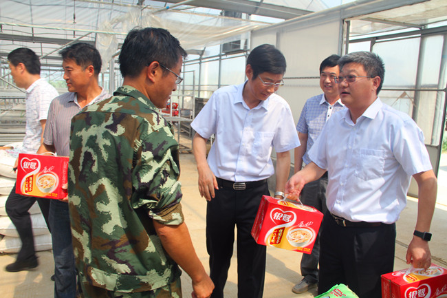 7月20日上午,集團副總經(jīng)理張其海、總會計師匡友本來我公司大新農(nóng)場、生態(tài)種養(yǎng)中心走訪慰問拼搏在農(nóng)業(yè)種養(yǎng)一線的基層職工,為他們送上綠豆、白糖、牛奶及八寶粥等防暑降溫品。投資公司董事長、黨委書記胡傳法、黨委副書記、副總經(jīng)理史祥平、副總經(jīng)理周緒祥陪同慰問。