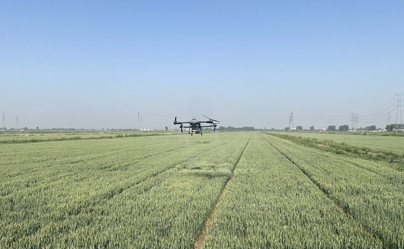 5月13日清晨,大新農(nóng)場(chǎng)搶抓有利天時(shí),利用無(wú)人機(jī)開(kāi)展“耐鹽堿小麥葉面肥施用作業(yè),有效提升農(nóng)業(yè)精細(xì)化管理水平、提升農(nóng)機(jī)作業(yè)質(zhì)量和效率。(王璐)