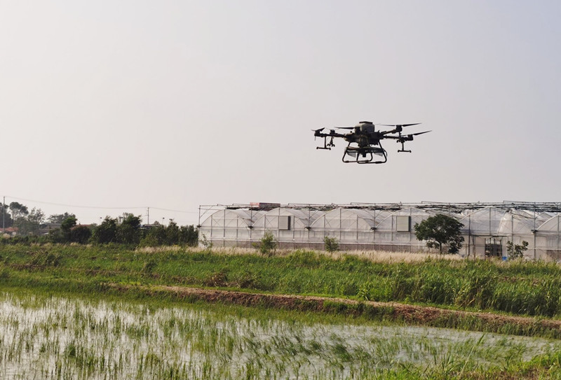 夏至水門(mén)開(kāi),接連幾天的暴風(fēng)雨,田間道路泥濘。6月28日下午,天氣剛剛轉(zhuǎn)晴,倉(cāng)儲(chǔ)中心抓住有利天時(shí),緊爭(zhēng)農(nóng)務(wù),搶抓農(nóng)時(shí)節(jié)點(diǎn),采用無(wú)人機(jī)為水稻田有序開(kāi)展追肥工作。(姜姝妍)
