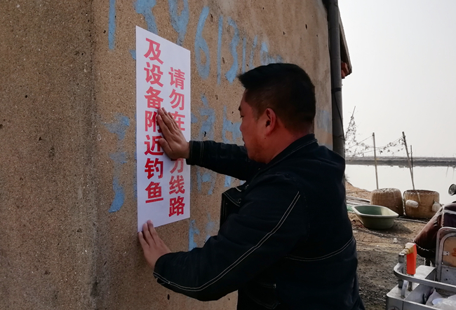 近期,黃沙分場開展垂釣防觸電安全宣傳活動,提醒廣大釣魚愛好者垂釣時應(yīng)遠離高壓線,防范杜絕高壓線下垂釣觸電傷人事故發(fā)生。