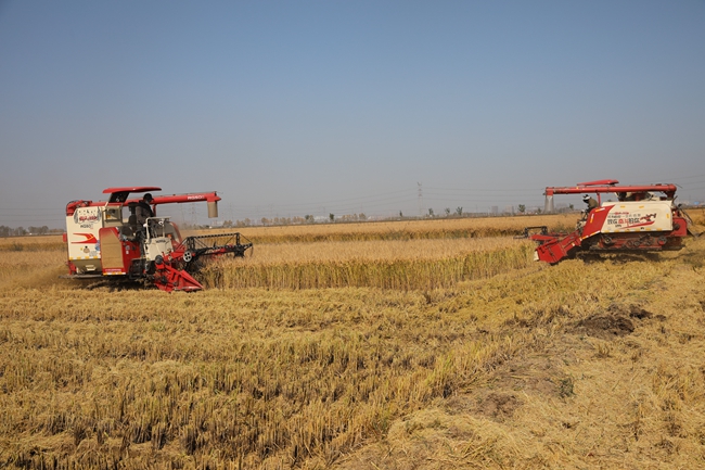 當(dāng)前正值秋收大忙的關(guān)鍵時(shí)期,大新農(nóng)場(chǎng)到處可見機(jī)械來(lái)回穿梭地收割、運(yùn)糧、堆糧場(chǎng)景,空氣中彌漫著淡淡的稻香,一派繁忙的豐收景象。為確保秋糧顆粒歸倉(cāng),公司秋收工作組在田間和曬場(chǎng)間奔忙著,計(jì)量稱秤、農(nóng)機(jī)管理、巡查值守、后勤保障,統(tǒng)籌安排搶抓晴好天氣抓緊水稻收割,全力打好秋收攻堅(jiān)戰(zhàn)。農(nóng)場(chǎng)從11月4日開始進(jìn)入收割期,十幾臺(tái)收割機(jī)、拖拉機(jī)等農(nóng)機(jī)全部投入生產(chǎn),收割機(jī)每臺(tái)每天基本可以收割30畝左右,農(nóng)場(chǎng)自營(yíng)的5500余畝水稻預(yù)計(jì)于本周內(nèi)全部收完。今年天氣多變性小,適合水稻生長(zhǎng),預(yù)計(jì)今年水稻的產(chǎn)量將高出去年。(大新農(nóng)場(chǎng))