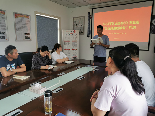 近期,生產(chǎn)生活服務(wù)中心黨支部組織黨員同志深入學(xué)習(xí)《習(xí)近平談治國(guó)理政》第三卷內(nèi)容,黨員們紛紛上臺(tái)朗讀自己喜愛的章節(jié),在學(xué)習(xí)中聯(lián)系工作理解思想理論,進(jìn)一步加強(qiáng)對(duì)習(xí)近平新時(shí)代中國(guó)特色社會(huì)主義思想的認(rèn)識(shí),聚焦自身實(shí)際深入學(xué),深刻感悟我將無(wú)我的情懷和自我革新的意識(shí),切實(shí)用習(xí)近平新時(shí)代中國(guó)特色社會(huì)主義思想武裝頭腦、指導(dǎo)實(shí)踐、推動(dòng)工作。(牛 瑩)