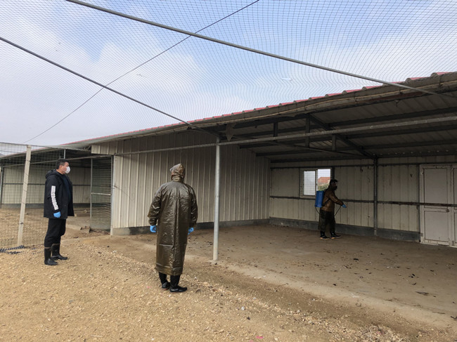 丁海明接到上級(jí)命令后,馬上行動(dòng)起來,嚴(yán)格按照疫情防控要求,進(jìn)行雞舍的消毒工作:環(huán)境消毒、衛(wèi)生清理……生態(tài)養(yǎng)雞場(chǎng)內(nèi),丁海明戴著口罩,有條不紊地進(jìn)行著這些繁瑣的工作。