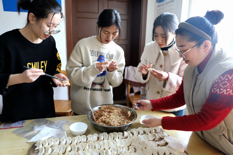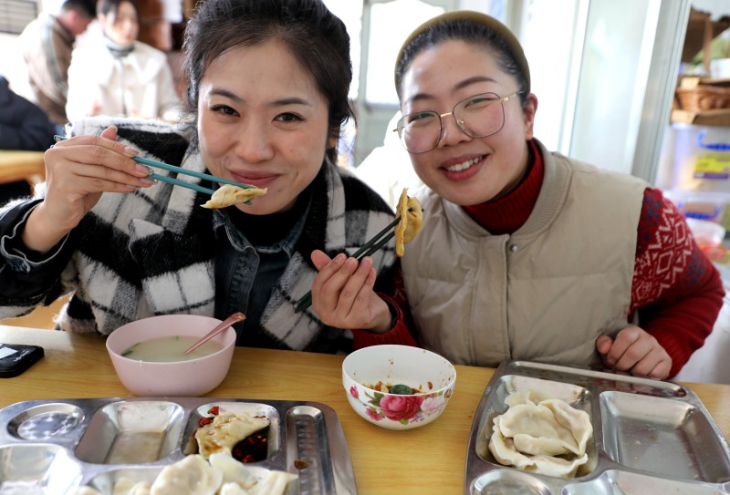 ? ? ? ?活動現(xiàn)場,大家有說有笑,默契配合,有的揉面團(tuán)、有的拌餃餡、有的搟面皮、有的包餃子,大家互相切磋著包餃子的技巧,好不熱鬧,包出來的餃子也是形態(tài)各異,有元寶狀、小船狀、三角狀,還有獨具特色的花邊餃,女職工們紛紛拿著自己的勞動“成果”,擺在手心互相比較著餃子的形狀,隨著一雙雙靈巧的小手來回舞動著,在一片喜慶、溫馨的氛圍中,一個個口味不一的餃子就展現(xiàn)在大家面前。當(dāng)一盤盤熱氣騰騰的餃子端上桌,食堂瞬間香氣四溢,吃著自己親手包的餃子,每個人的臉上無不洋溢著滿足、幸福的笑容。