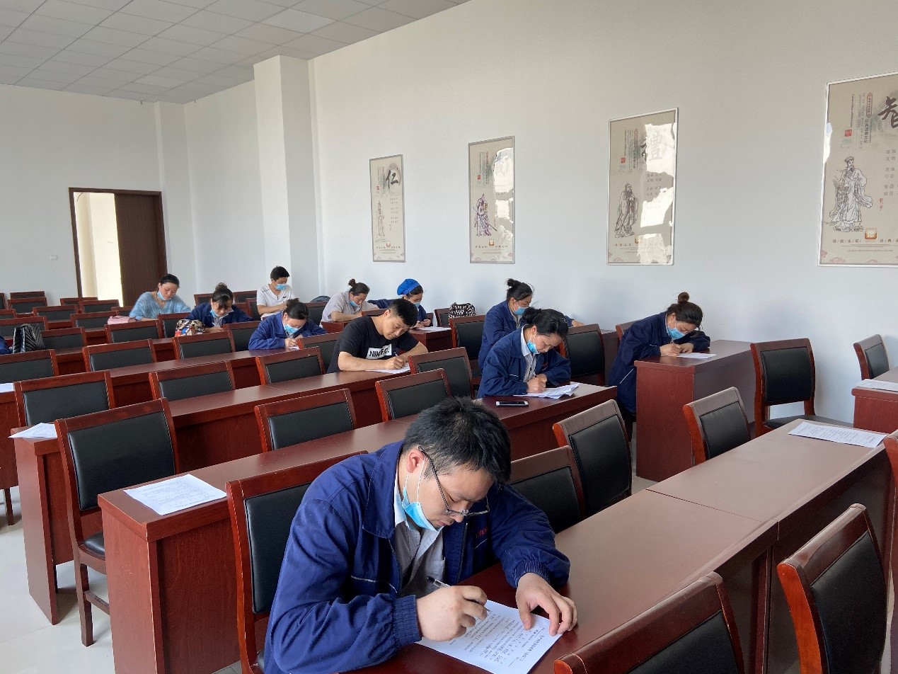 截至527日,生產(chǎn)設(shè)備部3個(gè)生產(chǎn)班組已全部順利完成后紡作業(yè)培訓(xùn),進(jìn)入后紡操作技能筆試階段。(圖為527日上午,生產(chǎn)丙班后紡員工參加后紡操作技能筆試考核。)