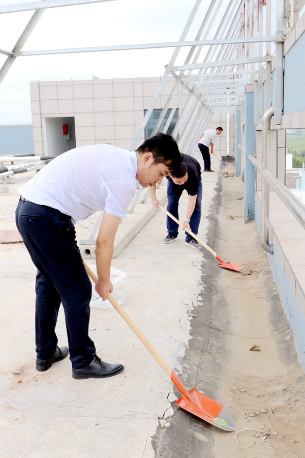 為凈化、美化公司辦公樓樓頂環(huán)境,消除積水隱患,826日上午,公司組織黨員、團(tuán)員青年志愿者開展了專項(xiàng)清理整治行動(dòng)。志愿者不畏艱辛,對樓頂進(jìn)行了細(xì)致清掃,認(rèn)真疏通排水口,力爭陰雨天氣不再出現(xiàn)積水現(xiàn)象。(神特宣)