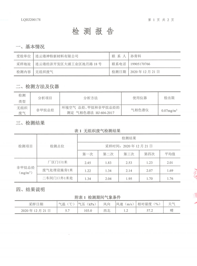 神特公司檢測報告公示