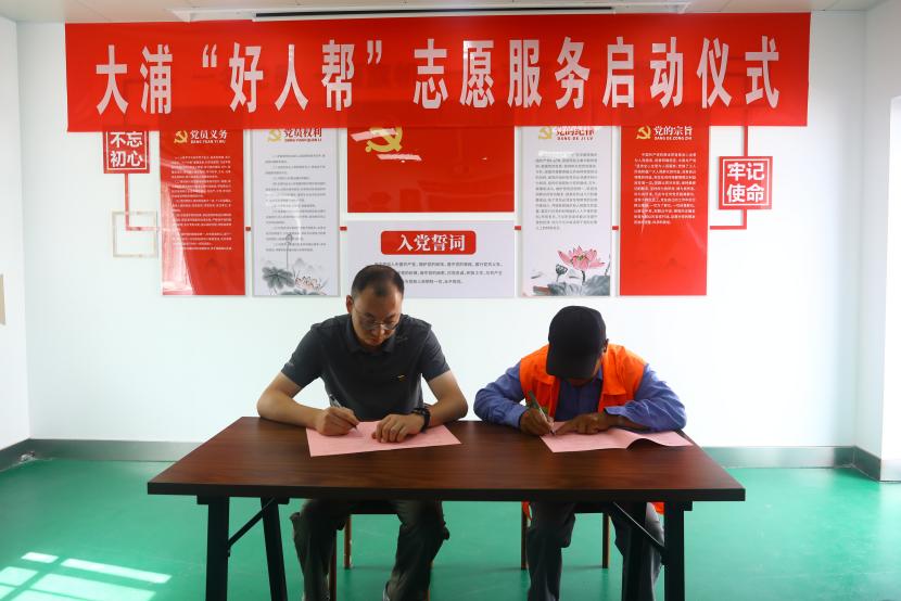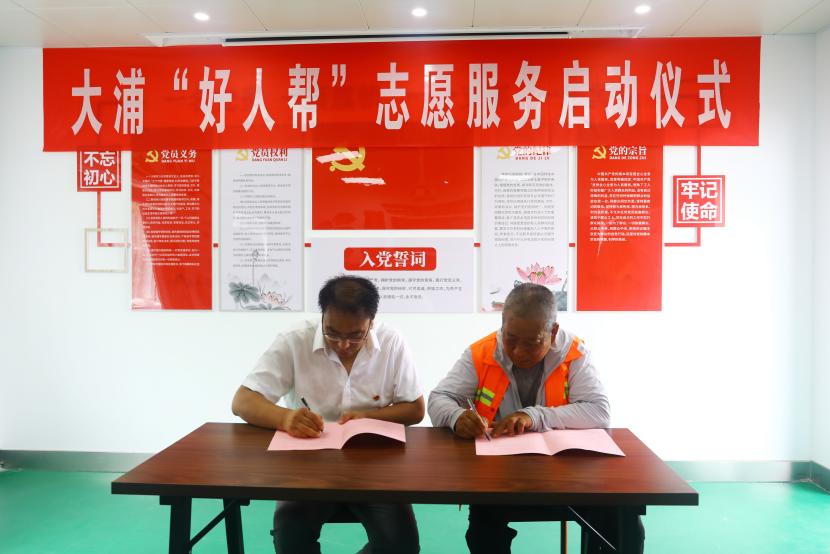 公司黨委書記、董事長王德志為“中國好人”常皓同志頒發(fā)了聘書,聘請常皓同志擔(dān)任“好人幫”志愿服務(wù)隊名譽輔導(dǎo)員。黨委副書記、工會主席、副總經(jīng)理傅健向“好人幫”志愿服務(wù)隊進行了授旗,大浦分公司負責(zé)人代表“好人幫”志愿服務(wù)隊宣讀了《爭當(dāng)好人倡議書》,三名“好人幫”志愿服務(wù)隊成員與幫扶對象結(jié)對并簽訂了幫扶協(xié)議書。