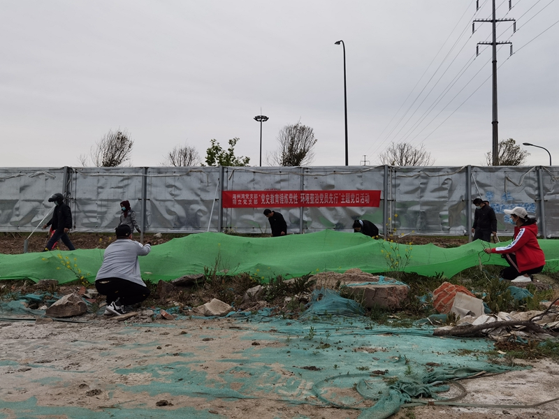 翔立分公司黨支部攜手海州灣公司黨支部對公司的車站小灘進(jìn)行環(huán)境整治,為裸露在外的土地進(jìn)行防塵網(wǎng)鋪設(shè)。