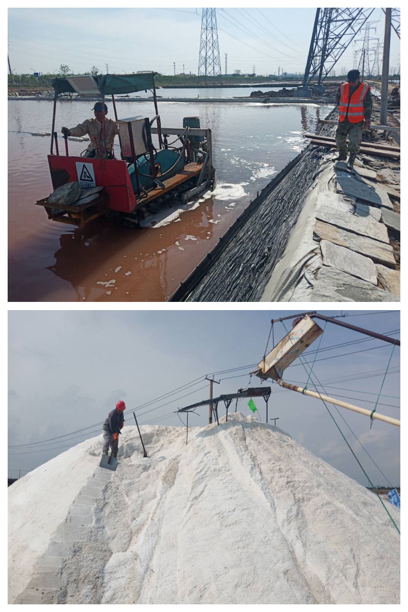 海州灣公司開定制的新式扒鹽機械正式投入使用,秋季生產(chǎn)如火如荼地進行中。