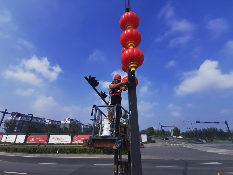 花果山大道上,翔立公司800余盞燈籠安裝工程已經(jīng)全部施工完畢,正在進行最后的全面檢修工作。