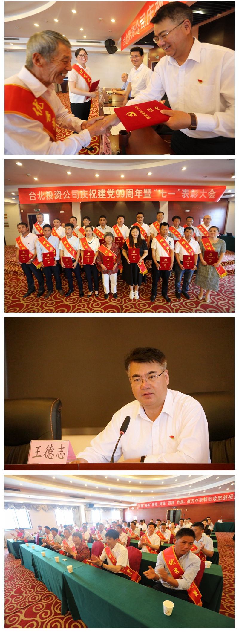 王德志代表公司黨委向為臺北發(fā)展無私奉獻(xiàn)的廣大共產(chǎn)黨員表示衷心的感謝,并致以節(jié)日的問候!他指出,去年以來,投資公司黨委堅持以習(xí)近平新時代中國特色社會主義思想為指導(dǎo),貫徹落實(shí)新時代黨的建設(shè)總要求和新時代黨的組織路線,堅持和加強(qiáng)黨對國有企業(yè)的全面領(lǐng)導(dǎo),進(jìn)一步配強(qiáng)基層黨支部書記、副書記班子,委派紀(jì)檢專員,著力實(shí)踐黨建與經(jīng)濟(jì)工作的互為融合,實(shí)現(xiàn)了“五個明顯提升”。一是黨員干部的思想素質(zhì)明顯提升。二是黨組織的戰(zhàn)斗力明顯提升。三是融入發(fā)展中心明顯提升。四干部廉潔自律意識明顯提升。五是和諧企業(yè)構(gòu)建水平明顯提升。