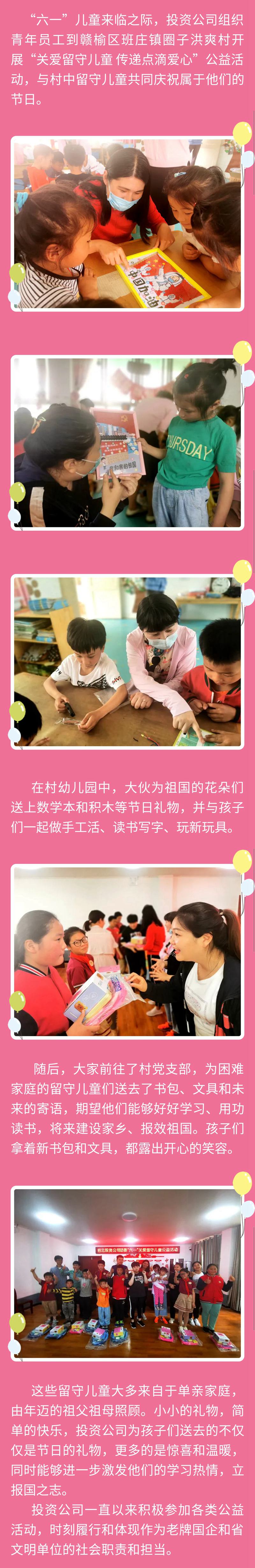 投資公司開展“關(guān)愛留守兒童 傳遞點(diǎn)滴愛心”公益活動(dòng)