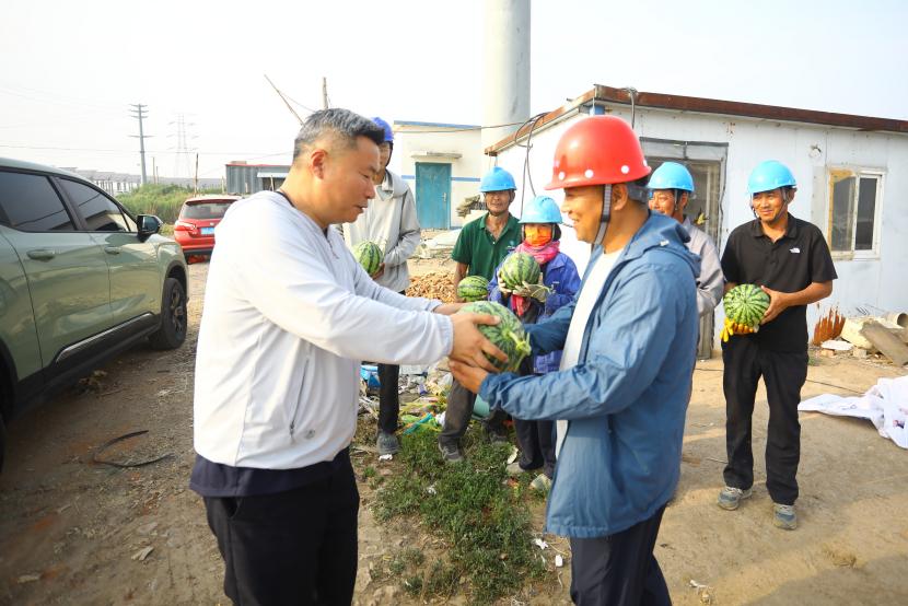 “施工現(xiàn)場送西瓜啦!”隨著夏日高溫持續(xù)攀升,為全力做好高溫天氣下職工防暑降溫工作,切實保障職工安全健康權(quán)益,自520日起,臺北投資公司工會精心策劃并開展“夏送清涼”主題活動。公司工會深入工程施工現(xiàn)場,將甘甜多汁的西瓜送到堅守在高溫崗位的職工手中,為他們送去陣陣清涼,這一暖心舉措收獲職工們紛紛點贊。