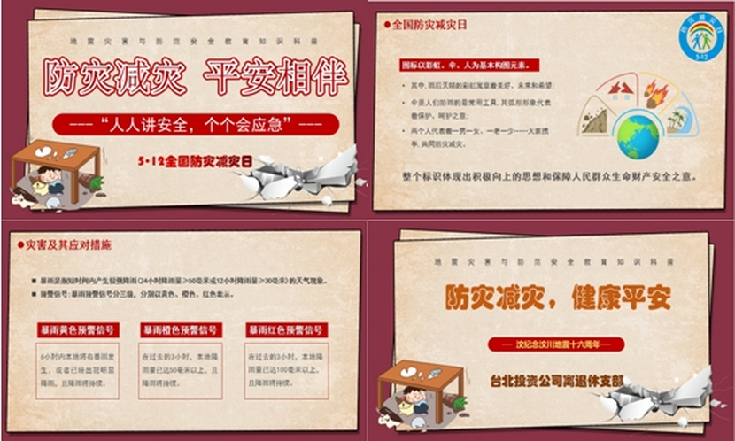 近日,離退休支部開展“5·12防災(zāi)減災(zāi)”科普活動。結(jié)合支部的實際情況,通過辦公場所用電防火安全檢查和交通出行安全警示,進(jìn)一步排查整改生活、工作中存在的安全隱患。組織觀看防災(zāi)減災(zāi)宣傳片和制作防災(zāi)減災(zāi)PPT來普及防災(zāi)減災(zāi)知識,了解地震、臺風(fēng)、暴雨、洪水等自然災(zāi)害的應(yīng)對措施,來防范化解災(zāi)害風(fēng)險,提升公眾防災(zāi)減災(zāi)的意識和能力,實現(xiàn)“人人講安全,個個會應(yīng)急”。
