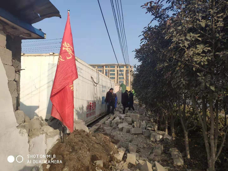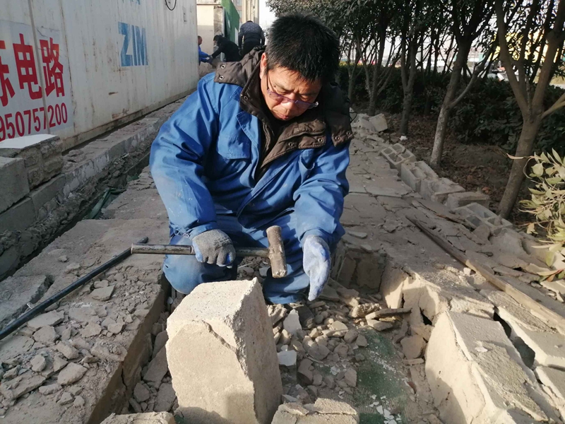 據(jù)悉,該處墻頭整體倒塌,大多數(shù)磚塊沒(méi)有受到損壞。志愿者們一塊一塊的挑選、清理、搬運(yùn),將可以回收利用的磚塊整理好,用于墻頭的修葺。水泥、沙的配比不太熟悉,天氣寒冷如何做好防凍,怎么辦?臨達(dá)公司的退休老黨員主動(dòng)站了出來(lái),為圍墻修葺工作做指導(dǎo),提供幫助。經(jīng)過(guò)兩天的奮戰(zhàn),將倒塌的墻頭修葺好,并拉好了美化綠布。