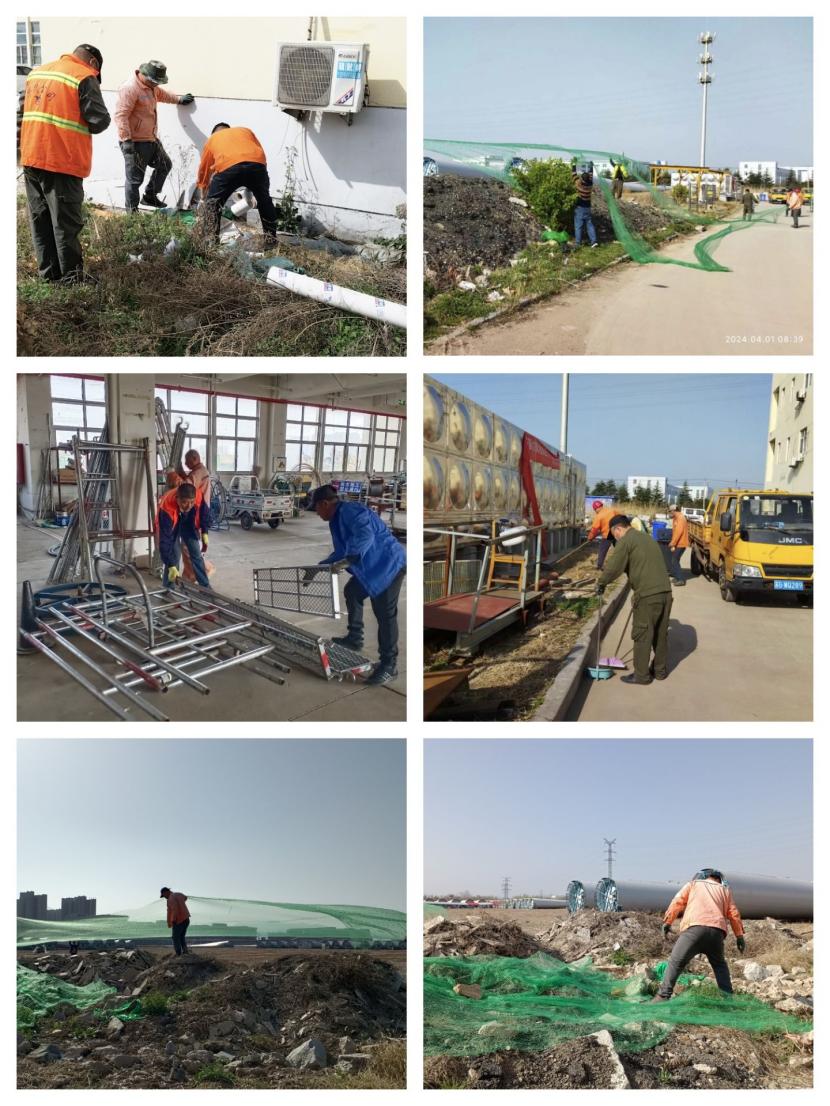 4月1日上午,該分公司各班組職工對室外露天的沙堆和石子用防塵網(wǎng)進(jìn)行認(rèn)真的覆蓋,有效的防止了揚(yáng)沙揚(yáng)塵對環(huán)境的污染影響。在車間里,職工們將散亂在各處的角手架等物品整齊的擺放在了指定區(qū)域,然后用水龍頭對地面進(jìn)行認(rèn)真的清洗,保證車間內(nèi)一塵不染的視覺效果,本次活動(dòng)的開展,明顯提升了車間和周邊環(huán)境的衛(wèi)生條件,增強(qiáng)了公司的環(huán)保形象,為大干二季度營造了良好的工作環(huán)境。
