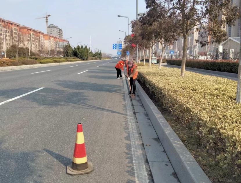 近日,環(huán)衛(wèi)分公司針對暴雪天氣后主干道側(cè)分帶路牙石灰垢較多、主干道護(hù)欄下灰垢較多等難題開展集中清掃工作。