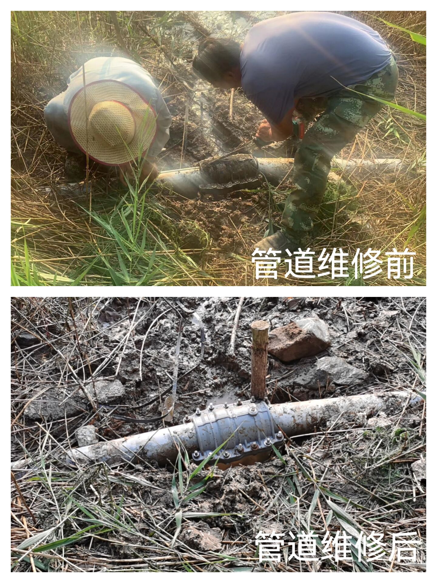 經(jīng)過現(xiàn)場查看,發(fā)現(xiàn)該處管道一直在往外噴射鈣液,管道組王建華、汪永柱兩位師傅立即討論現(xiàn)場維修方案,秉承降本增效的原則,能修不換,決定用哈弗節(jié)進行維修固定。