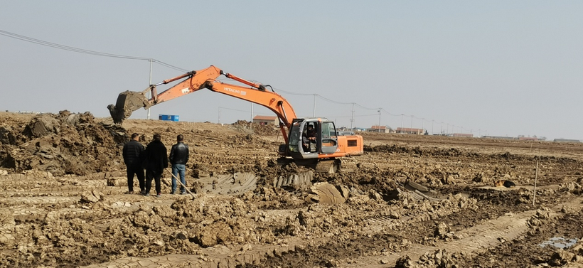 ▲3月23日養(yǎng)殖戶對(duì)養(yǎng)殖池塘機(jī)械施工
