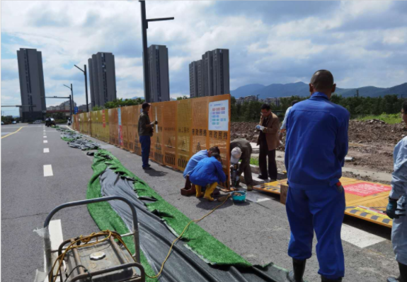 昨日,受大風(fēng)天氣影響,東晉路上的隔離欄傾倒,該路段恰好處于市創(chuàng)文創(chuàng)衛(wèi)的巡檢路線上。當(dāng)天晚上接華茂公司通知,翔立分公司鐵軍“臨危受命”,承接圍欄搶修復(fù)原固定工程,共有18名員工早上6點冒著蒙蒙細(xì)雨在施工現(xiàn)場投入搶修,大理石路牙石背面用膨脹螺絲焊接一一將隔離欄用支撐架固定,該工程限期在兩日內(nèi)完工。