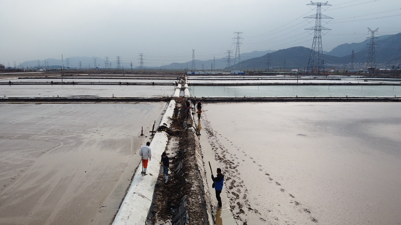 此時正是春曬制鹽的“黃金期”,海州灣公司獲知情況后,主動帶領(lǐng)全體員工組成“突擊隊”為兄弟單位“減負(fù)”,在大家共同努力下長約1200米的池堰一上午修整完畢,為下一步的池內(nèi)壓實及早日灌池贏得了寶貴的時間。