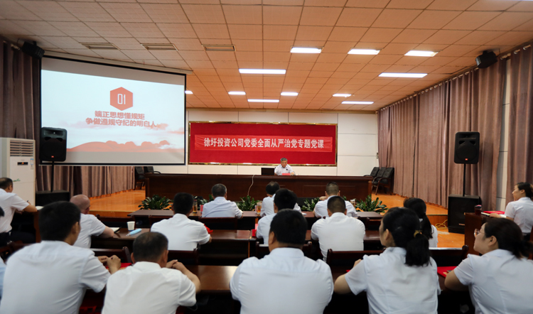 ? ? ? 會(huì)上,投資公司黨委書(shū)記、董事長(zhǎng)、總經(jīng)理莊清付以《強(qiáng)化紀(jì)律規(guī)矩、提高執(zhí)行能力》為題,給與會(huì)人員上了一堂全面從嚴(yán)治黨專題黨課。