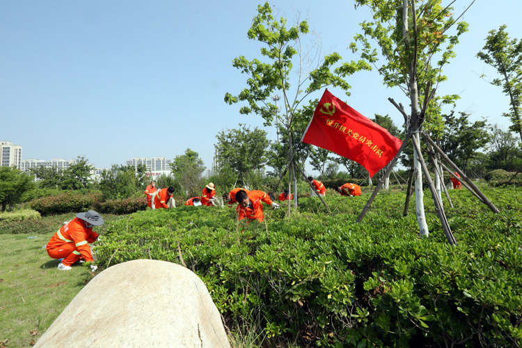 活動分為四組進行,四組黨員突擊隊跟隨引導員的腳步到達各自片區(qū),進行綠化帶雜草清除作業(yè)。在各組支部書記的帶領(lǐng)下,勞動中人人做表率,個個干勁足,有條不紊互相配合,一抹抹橘色在清新草色的襯托下格外美麗。