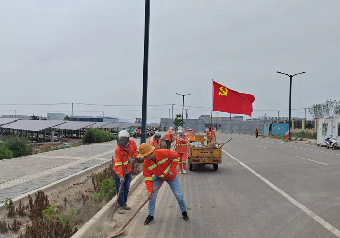621日,該黨支部近30余名黨員在支部的感召下,匯集于新區(qū)節(jié)能一路道路兩邊。勞動現(xiàn)場,黨員生產(chǎn)骨干姚功身先士卒,無懼泥土粉塵揚起,揮汗清理,不怕臟、不怕累,不放過任何衛(wèi)生死角。勞模張學軍與老黨員徐習東相互配合,打包,裝車, 及時轉運各類垃圾達50多袋,清掃路面積土近1500米長,大家分工明確,重活臟活搶著干。隊員們齊心協(xié)力,用實際行動詮釋黨員吃苦在前、勇于擔當?shù)姆瞰I精神。經(jīng)過四個多小時清理,主干道及周邊道路垃圾、雜草、泥土全部清理干凈,高質量完成奉獻勞動,鮮艷的黨旗在陽光的照耀下顯得格外閃亮。(楊波)