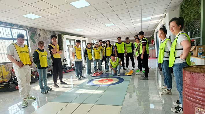 30余名青年骨干依次分成兩隊進行團隊拓展比賽,大家在暖場游戲破冰行動中相互熟悉。緊接著大家按照隊伍分組開展訓練游戲,訓練中大家集中精力,相互扶持幫助,共同完成對戰(zhàn)。其中冰壺游戲考驗每位青年的耐心和定力,需要瞄準方向,掌握好力度,共同協(xié)作得出好成績。多個極富挑戰(zhàn)性的項目在大家的齊心協(xié)力下順利完成。整場活動現(xiàn)場氣氛活躍,盡顯青春活力,比賽的形式也將本次活動推向了高潮。