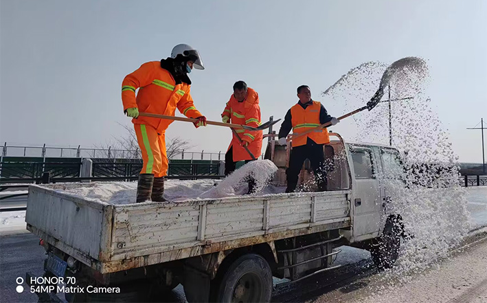 在白雪皚皚的雪地里,身穿橘黃工作服的保潔工人就是最美的點綴,他們頂著風(fēng)雪吹打臉頰,兩人一組、三人一對,配合默契,揮動手中鐵銑,用力拋灑融雪鹽斤80多噸,10余車。道路橋粱兩側(cè),人行輔道邊上,公司上下齊心協(xié)力,9名班長在公司統(tǒng)一調(diào)配下,帶領(lǐng)班組人員,人工清除大小橋梁兩側(cè)積雪30多座,人行輔道長達3000多米長,站臺、叉路口積雪100多處,為保障恢復(fù)雪后新城環(huán)境整潔而努力工作。大型清掃設(shè)備駕駛員全員齊上陣,安全行車裝運融雪鹽斤里程達200多公里,工作時長10個多小時,安全操作鋤雪機械清理張圩互通引橋,埒子口大橋等路段長達5000多米長,有力彰顯機械破冰、除雪強大功能。(楊波)