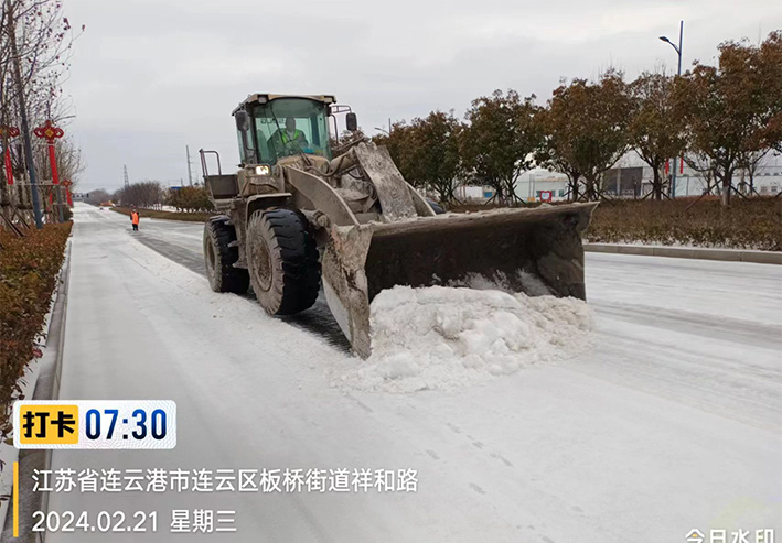 雪花紛飛,寒風(fēng)凜冽,板橋工業(yè)園區(qū)內(nèi),除雪車(chē)、雪輥車(chē)等機(jī)械設(shè)備齊上陣,采取機(jī)械化與人工除雪相結(jié)合的方式,雪鍬、掃帚齊上陣,大家你鏟我除、干勁十足,以最快的速度清除板橋園區(qū)云港路、祥和路、瑞和路等交叉路口、重要地段冰凍積雪。