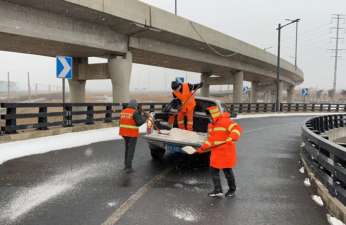 掃雪除冰工作刻不容緩。按照悅升公司掃雪除冰工作任務(wù)分配,環(huán)衛(wèi)分公司負(fù)責(zé)228徐新路到環(huán)保大道路段掃雪除冰任務(wù)。該區(qū)域內(nèi)因含有張圩互通大橋,光橋梁匝道、輔道就有8條,上下路段非常陡滑,給掃雪除冰工作帶來極大挑戰(zhàn)。但該公司人員堅決認(rèn)領(lǐng)任務(wù),沒有任何退縮。他們采取車輛緩慢行駛方式,橋梁陡峭路段就使用人工用鐵锨一锨一锨端灑的方式進行。雖然寒風(fēng)雪天中,不停的作業(yè)使胳膊潑灑的極其酸累,但大家不辭辛苦,沒有一絲怨言,全體人員全部值守在崗,奮戰(zhàn)在掃雪除兵工作第一線,僅2月4日一天,就潑灑融雪劑7車近30噸,為打贏掃雪除冰功堅戰(zhàn)打好堅實基礎(chǔ)。(晁華)