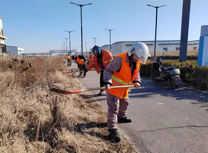 數(shù)九寒冬,滴水成冰。連日來,為延伸拓展打造園區(qū)樣板路提升擴(kuò)建工程,保潔分公司因地制宜,制定道路整治方案,強(qiáng)化分工、明確責(zé)任、全力以赴吹響園區(qū)樣板路工程沖鋒號角,樣板路創(chuàng)建工作景象再度“升溫”,道路沿線處處展現(xiàn)敬業(yè)辛勤勞作場面。