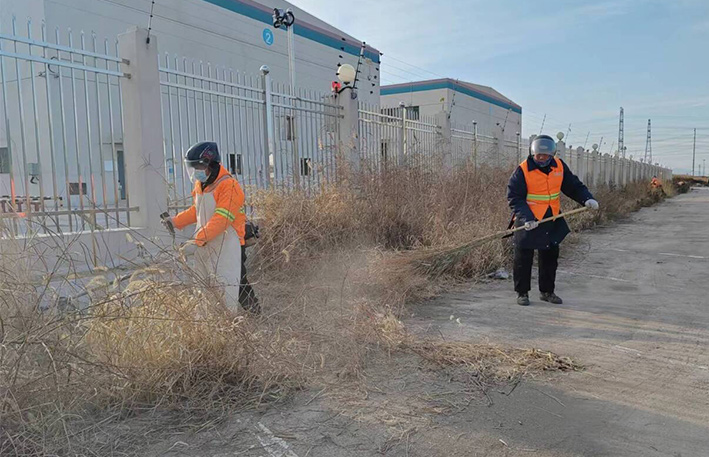 該分公司園區(qū)兩個班組近35名保潔勇士,無懼低溫刺骨天氣,匯聚石化十路、石化三道道路兩側(cè)。勞動現(xiàn)場,黨員骨干示范帶頭作用處處體現(xiàn)。石峰、朱海勇、楊靜身背幾十斤重打草機(jī),無所怨言,持續(xù)工作時長達(dá)三個多少時。在他們的帶動下,班組人員一字排開,分工明確,各負(fù)其責(zé)。