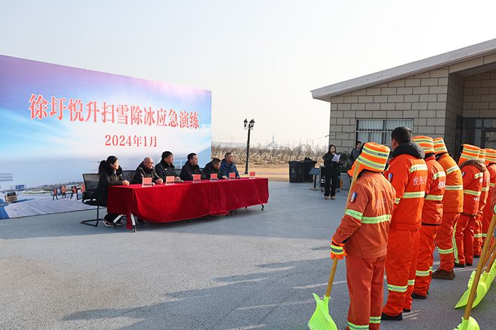 冬季是冰凍、降雪等自然災(zāi)害高發(fā)季節(jié),為切實做好冰雪災(zāi)害性天氣的應(yīng)對及突擊保障工作,搶險救災(zāi)減少損失,1月4日下午,悅升公司聯(lián)合徐圩城建公司及社事局、徐圩環(huán)衛(wèi)所在上海路進行掃雪除冰應(yīng)急演練。徐圩城建公司副總經(jīng)理肖堅,徐圩環(huán)衛(wèi)所所長郁紅衛(wèi),徐圩新區(qū)社會事業(yè)局環(huán)衛(wèi)科科長趙國慧、悅升公司董事長馮如師、總經(jīng)理徐習(xí)華及各公司相關(guān)負(fù)責(zé)人參與本次演練。