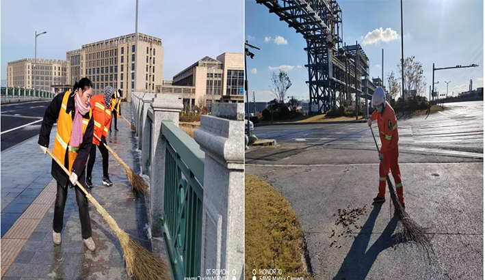 人工保潔“無(wú)所畏懼”。該分公司9個(gè)班組100多名保潔人員每天在班長(zhǎng)的帶動(dòng)下,無(wú)懼徐圩海風(fēng)吹透身體,盡管手凍僵了,仍然揮動(dòng)手中掃把清掃園區(qū)輔道落葉、泥土1500多米長(zhǎng),清倒各種果皮箱300多個(gè),轉(zhuǎn)運(yùn)各類(lèi)生活垃圾500多包,清洗站臺(tái)20多個(gè),清除道路坑塘積水30多處,深冬時(shí)節(jié)道路人工保潔質(zhì)效再“升溫”。
