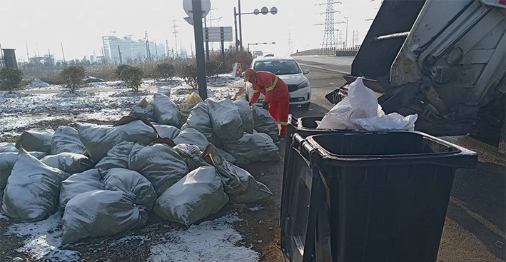 早上六點,在徐圩新區(qū)垃圾轉運站,環(huán)衛(wèi)分公司垃圾清運班組班長羅海軍正在等著垃圾收運中轉車的到來。他說:“知道昨晚下雪了,今天我們提前一小時就上崗了,以防因為道路濕滑影響收運效率?!?據(jù)統(tǒng)計,在持續(xù)低溫時段,他們每天清運生活垃圾高達15噸,清理轉運各類果皮箱垃圾達200余個及19家企業(yè)(單位)的垃圾桶,并同步負責裝運由道路保潔工人撿拾定點擺放在路邊的近500包袋裝垃圾。(何春林)
