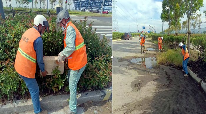 道路保潔“鏗鏘有力”。為高效完成此次大保障,該分公司提前行動(dòng),強(qiáng)化隱藏地點(diǎn),衛(wèi)生拐角,橋涵河邊等各種垃深度清理,裝運(yùn)。9個(gè)班組人員在班長帶動(dòng)下,步調(diào)一致,明確分工,無懼路面粉塵人工清掃道路岔口,拐角處泥土,雜草30余處,轉(zhuǎn)運(yùn)各類垃圾達(dá)200余袋,徒手清掃人行輔道雜草2000余米長,道路沿線呈現(xiàn)熱火朝天繁忙景象,有力保障活動(dòng)經(jīng)過路面整體環(huán)境衛(wèi)生整潔。