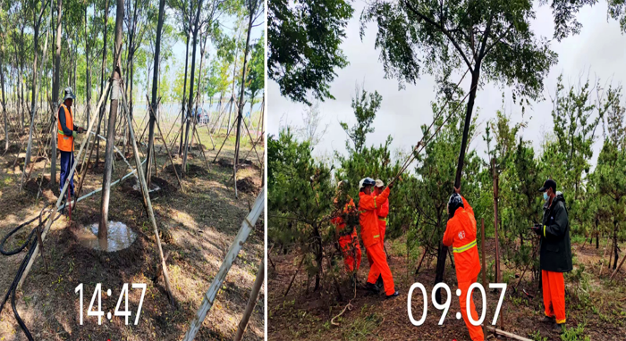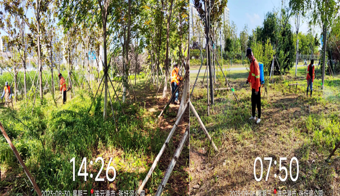 ? ? ? ?工作中,技術(shù)人員李傳武與管養(yǎng)班組長班長田恒亮、協(xié)管員葛承東奮戰(zhàn)在第一線,身先士卒,無懼高溫及蚊蟲叮咬,班組成員在其感染下,步調(diào)一致、步步為營,有序推進(jìn)各項工程進(jìn)度。經(jīng)統(tǒng)計,在張圩港河公園100萬平方米草坪綠化帶上開展各類修剪10次、雜草反復(fù)清理近20次、病蟲害藥物消殺4次、新栽各類苗木600余株、清理枯死樹木300余株、對相關(guān)造型樹進(jìn)行修型。在防汛抗旱維綠工作,采取白天人工澆水搭配晚間滴灌澆水的方法,確保綠綠植健康生長;暴雨后扶正傾倒樹木11余株,積極排澇2次……各項工作數(shù)據(jù)一路“飄紅”。