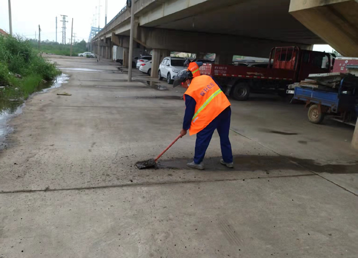 該公司針對橋面泄水孔、泄水管、排水道等地方安排專人檢查,養(yǎng)護(hù)清理的垃圾及時處理到位,不得堆放在泄水孔周邊。汛期視情況加大清理頻次。橋下衛(wèi)生死角雜物集中撿拾、打包、裝袋 、回場。橋面護(hù)欄亂懸亂掛廣告、標(biāo)語徹底清除及時沖洗,恢復(fù)原貌、露出底色。橋梁伸縮縫采取人工與機械結(jié)合重點沖洗清掃,保障伸縮縫干凈整潔。目前,所管轄區(qū)大小橋梁已經(jīng)水洗清掃整治到位。有效降低橋面揚塵現(xiàn)象的發(fā)生,增強行車安全系數(shù),全面提升園區(qū)道路環(huán)境質(zhì)量。